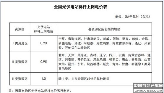 (一)根据各地太阳能资源条件和建设成本,将全国分为三类太阳能资源区,相应制定光伏电站标杆上网电价。各资源区光伏电站标杆上网电价标准见附件。