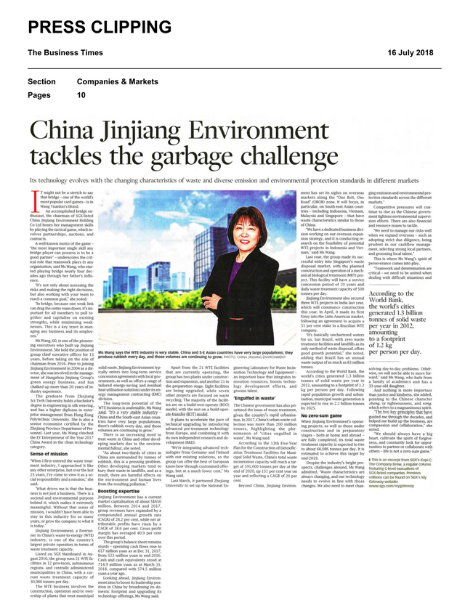 近日,中国锦江环境控股有限公司(以下简称“锦江环境”)董事长王元珞接受了《海峡时报》、《新加坡商业时报》专访,二者分别以《中国锦江环境在垃圾处理方面取得社会效益》、《中国锦江环境解决垃圾问题》为题报道了锦江环境的专业度与企业文化。