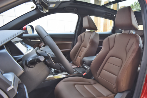 置身车内,全新哈弗H6那不对称的整体造型设计会给人强烈的新鲜感。水平贯穿式的中控台造型设计,打造了一个“反凹空间”,使车内空间利用率大幅上升。软性搪塑材质、真皮材质、金属装饰随处可见,而且整个内饰做工也颇为精细,在视觉和触觉上给人双重享受。
