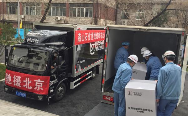 2月24日,中国石化党组决定在燕山石化、仪征化纤迅速上马10条熔喷布生产线。燕山石化连夜开工,建设者们以小时倒排工期,夜以继日连续奋战,仅用12天就完成了建设和安装。3月6日深夜,燕山石化产出合格熔喷布。3月9日下午,装载36箱1.26吨中国石化熔喷布的卡车驶离燕山石化生产厂区,奔向北京铜牛集团,以缓解该公司口罩原料短缺的燃眉之急,这是燕山石化新建熔喷布生产线建成投产后销售出厂的第一批产品。仪征化纤的所有生产线预计4月15日后陆续建成、5月底全部投产。