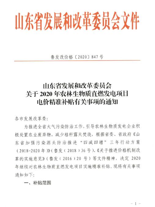 日前,山东发改委下发《关于2020年农林生物质直燃发电项目电价精准补贴有关事项的通知》,根据通知,只要满足2019年农业废弃物收购量不低于3万吨(含)且2020年配合当地政府治理秸秆露天焚烧,积极收购农业废弃物即可申请。