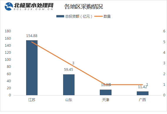 据北极星水处理网统计,今年以来,已有10大10亿+农村污水处理项目进入采购,10大项目投资总额高达242.63亿元,主要集中在江苏和山东地区,江苏独占五席,且已经采购完成的项目皆被央企或地方国资拿下。