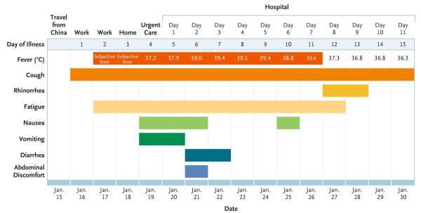 他在就诊时透露,1月15日,他在中国武汉探亲后回到了华盛顿州。患者说他看到了美国疾控中心(CDC)关于中国新型冠状病毒爆发的健康警报,考虑到自己的症状和最近的旅行史,他决定去看医生。