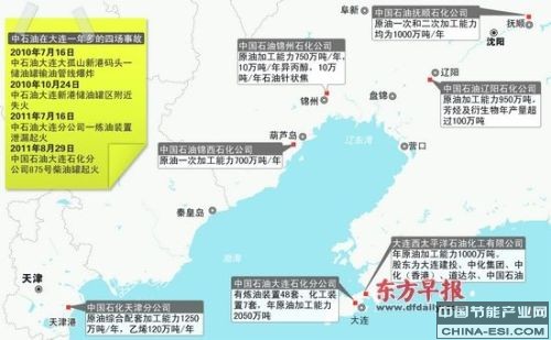 而整个辽宁省同样也将石油化工作为重要的支柱产业。除大连石化外,辽宁还拥有大连西太平洋石油化工有限公司、中国石油抚顺石化公司、中国石油辽阳石化公司、中国石油锦州石化公司、中国石油锦西石化公司等原油加工能力在700万吨以上的炼油企业。