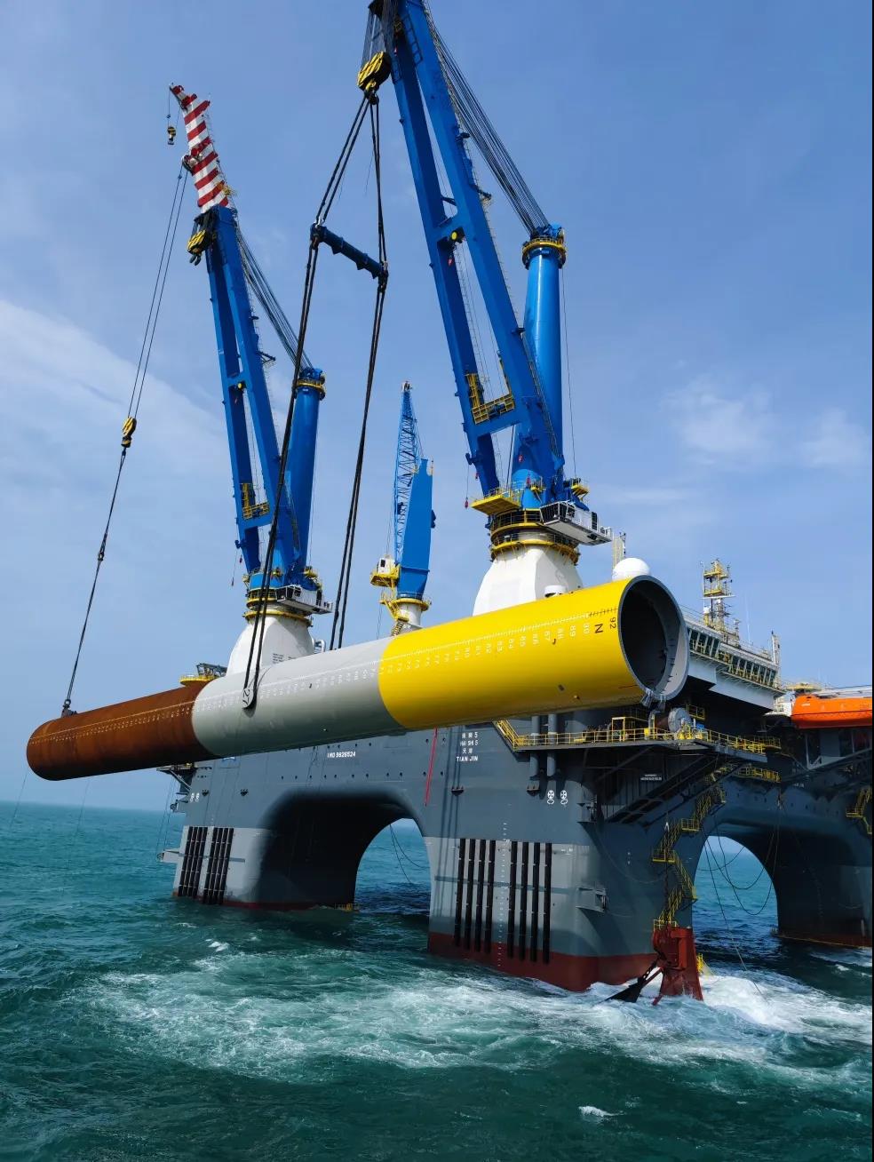 在抢装潮的大背景下,在全年有效施工期不足100天窗口期且施工难度大的情况下,项目团队先后引进了“振华30”、“华天龙”、“海狮5”投入到该项目施工,并且“振华30”、“海狮5”此前均未进行过海上风电基础施工,针对上述情况,项目团队深扎一线,优化方案,全程跟踪指导,积极协调各方单位及施工资源,严格把关,零事故、高质量的完成了施工任务,得到了业主及监理的高度认可。
