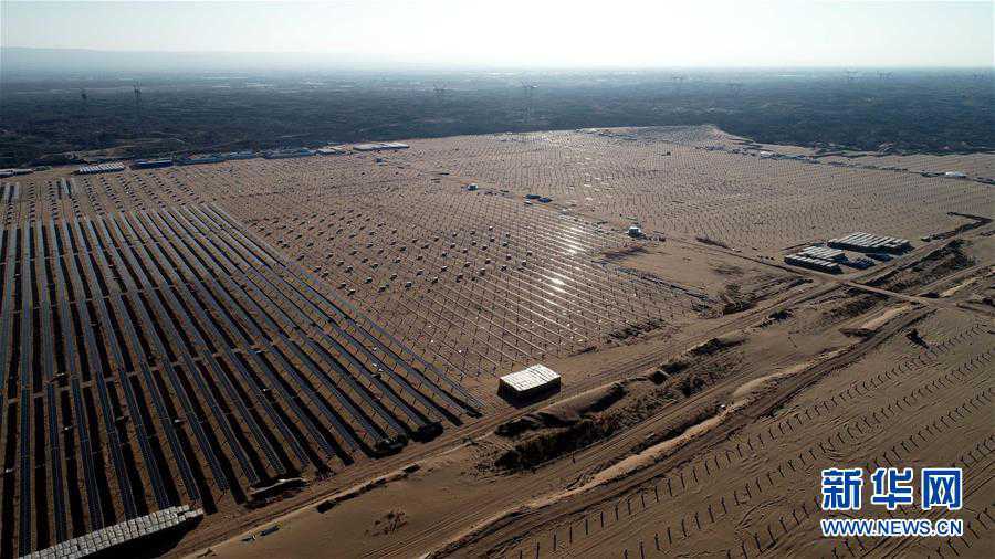 这是12月22日无人机拍摄的位于陕西靖边县伊当湾村二组“华能陕西靖边光伏发电项目”现场。预制支架连片竖立在沙地上,部分已安装上光伏板组件。新华社记者 梁爱平 摄