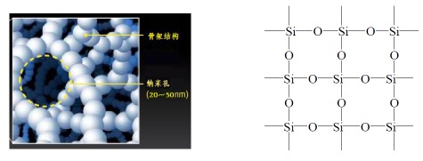 图1 气凝胶超级绝热保温材料的立体结构图和分子结构图