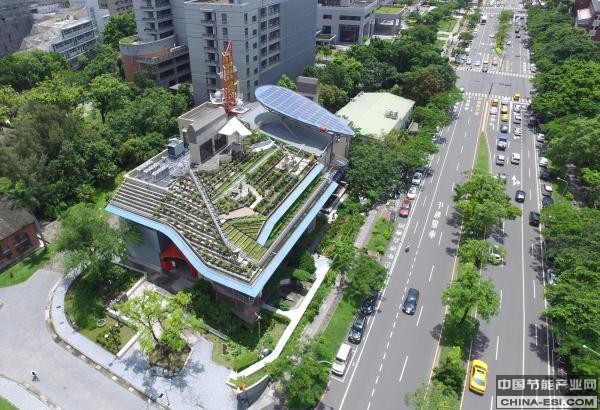 台湾成功大学力行校区入口处,紧邻马路伫立着一幢造型奇特的建筑物,头顶阶梯状花园、趴着“大瓢虫”的太阳能面板和小型风力发电机,在一片中规中矩的建筑楼群中尤为显眼。这座建筑面积3000多平方米的大楼,比同等规模办公楼节能70%,被“绿色建筑教父”尤德尔森(Jerry Yudelson)称为“世界上最绿的绿色建筑”,已成为中国台南地区的一处地标。