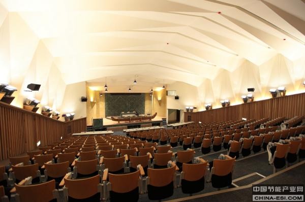 模仿灶台烟囱的自然浮力通风技术,让一座300人的国际会议厅在冬季四个月可以不开空调,达到空调节能28%;采用空调与吊扇并用设计,让办公区空调节能76%;采用陶瓷复金属灯二次反射照明设计,国际会议厅照明能耗也打了折扣。